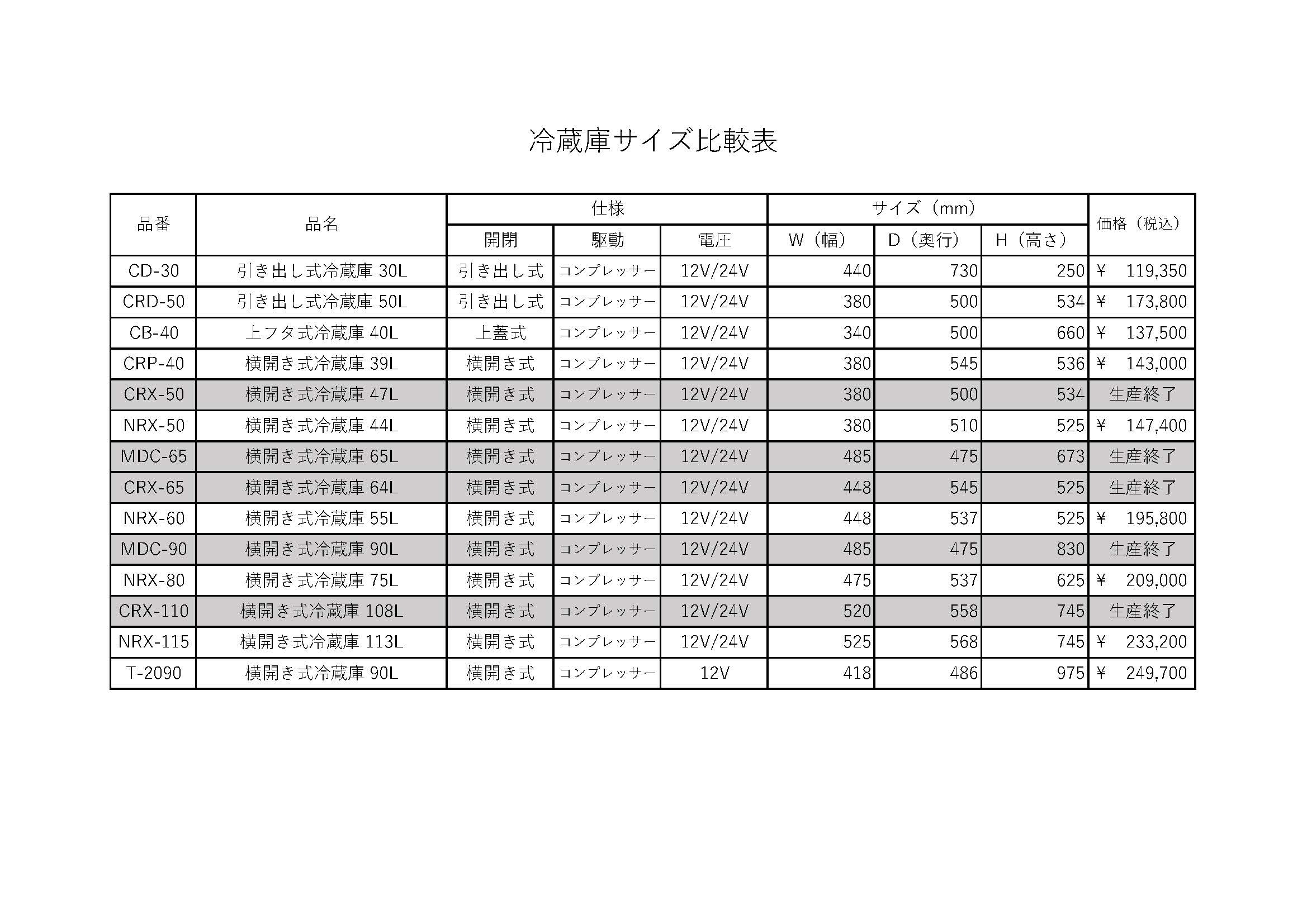 横開き式冷蔵庫(12V/24V専用、コンプレッサー)