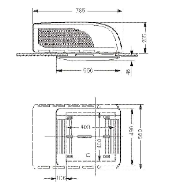 (開口寸400×400㎜のルーフベントとの取替えの場合は別途専用シーリングフレームをご購入ください)