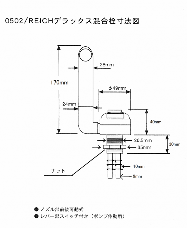 0502 REICH デラックス混合栓(スイッチ付)