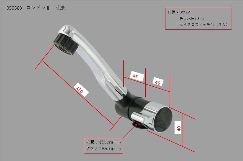 050503 シングルレバー蛇口“ロンドンⅡ”クローム(スイッチ付)