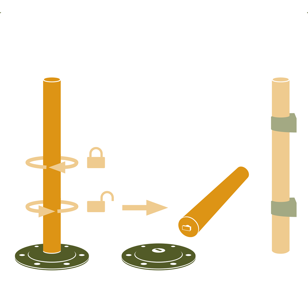 最適なスペースを確保するためロックシステムを備えた、自立式で簡単に取り外し可能なテーブル台座です。