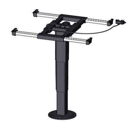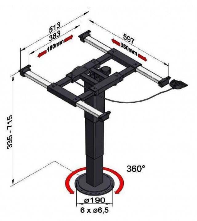 脚部は360度回転することができ、天板は前後左右にスライド可能です。