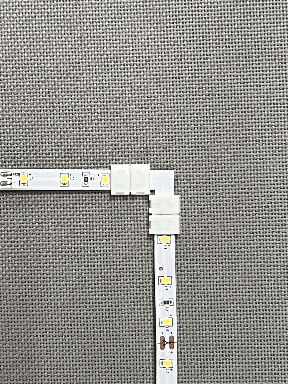 カットしたテープライト同士をワンタッチで直角に接続することができます。