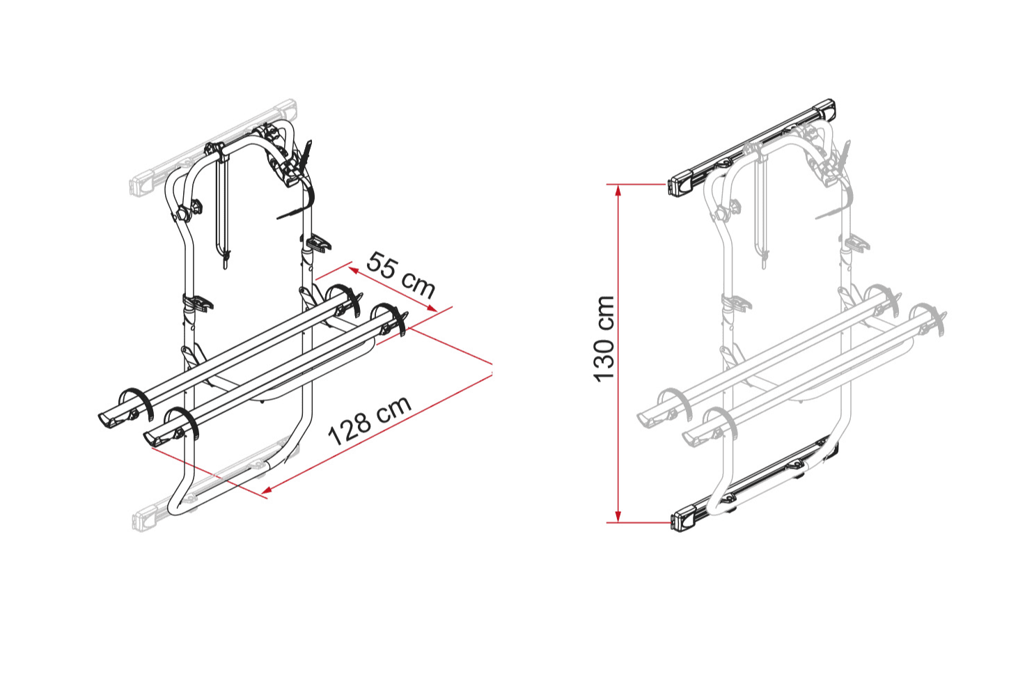 右側バックドアに取り付ける、DUCATO/H2専用のサイクルキャリアです。